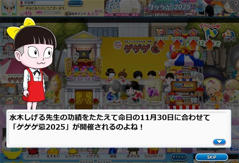 株式会社フジ・ネクステラ・ラボ(本社:東京都江東区、代表取締役社長:吉本 治)は11月13日(木)18:00(メンテナンス後)より運営中タイトル『ゲゲゲの鬼太郎 妖怪横丁』にて『ゲゲゲ忌2025』とコラボイベント「ゲゲゲ忌2025~ゲゲゲのスタンプラリ~」を開催することをお知らせいたします。