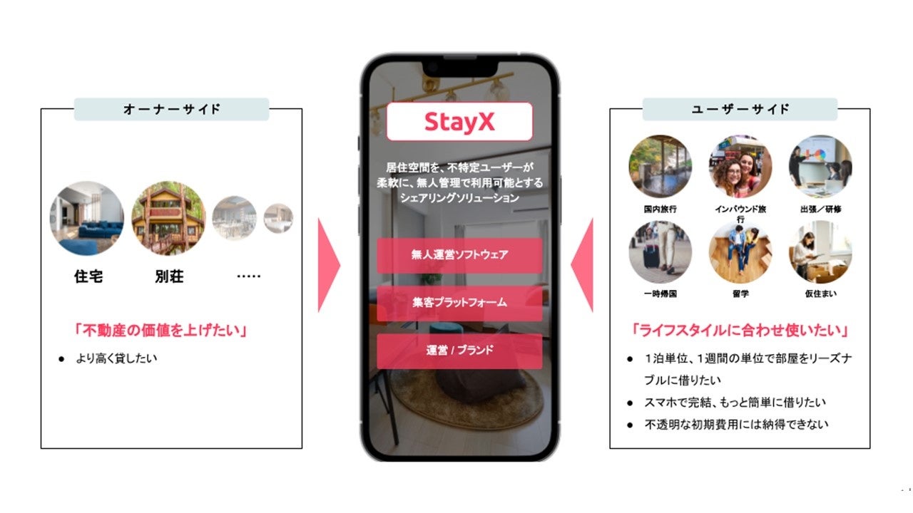 ソフトウェアを主軸に、空間の価値を最大化するソリューション「StayX」を運営(本社:東京都新宿区)