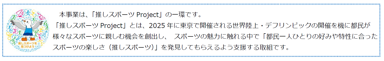 スポーツ国際交流事業、都立スポーツ施設連携促進事業など、東京都と連携した事業も実施しており、