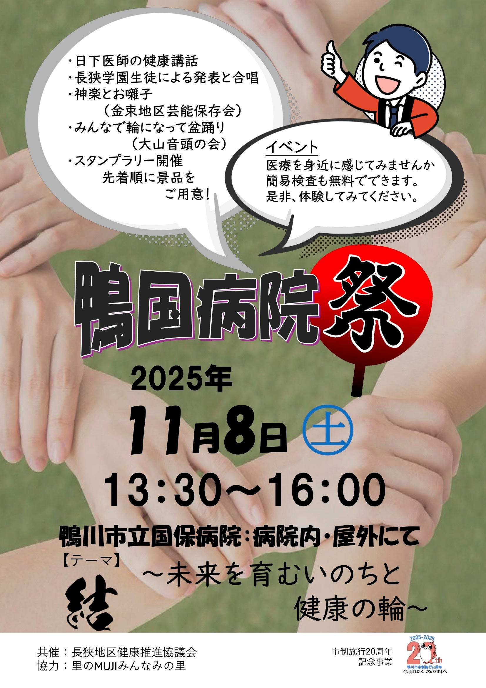 株式会社FLOCAL(本社:千葉県南房総市、代表取締役:日下 伸明、以下「FLOCAL」)は、千葉県鴨川市の鴨川市立国保病院(所在地:千葉県鴨川市、病院長:小橋 孝介、以下「鴨川国保病院」)で2025年11月8日に開催された第2回「鴨国病院祭」において、企画・運営支援およびコンテンツ提供を行ったことをお知らせいたします。