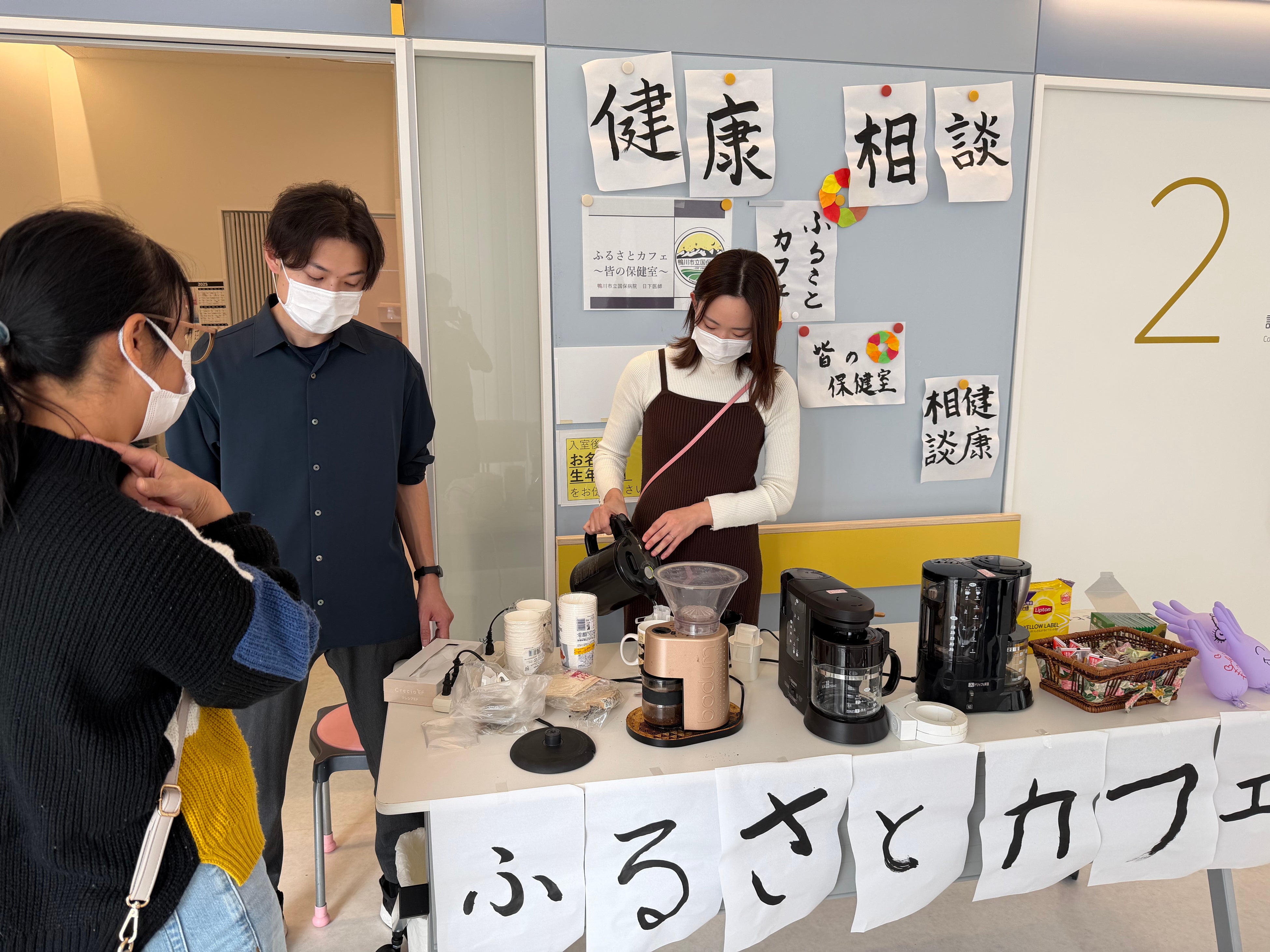 - ふるさとカフェの開催 ~人材循環と学びの場~FLOCALの取り組みの1つとして、地域病院で育った学生研修医が自らのふるさととして、帰って来るような人材循環を「行きつけのふるさと」として支援し、医療者が地域に戻る仕組みづくりに貢献しています。今回は、鴨川国保病院で育った学生・研修医などの卒業生が祭に参加して、健康相談やカフェの提供を行うイベントを開催しました。これは、現場で丁寧に教育した職員の努力の成果であり、感謝の意を伝え合うきっかけとなりました。