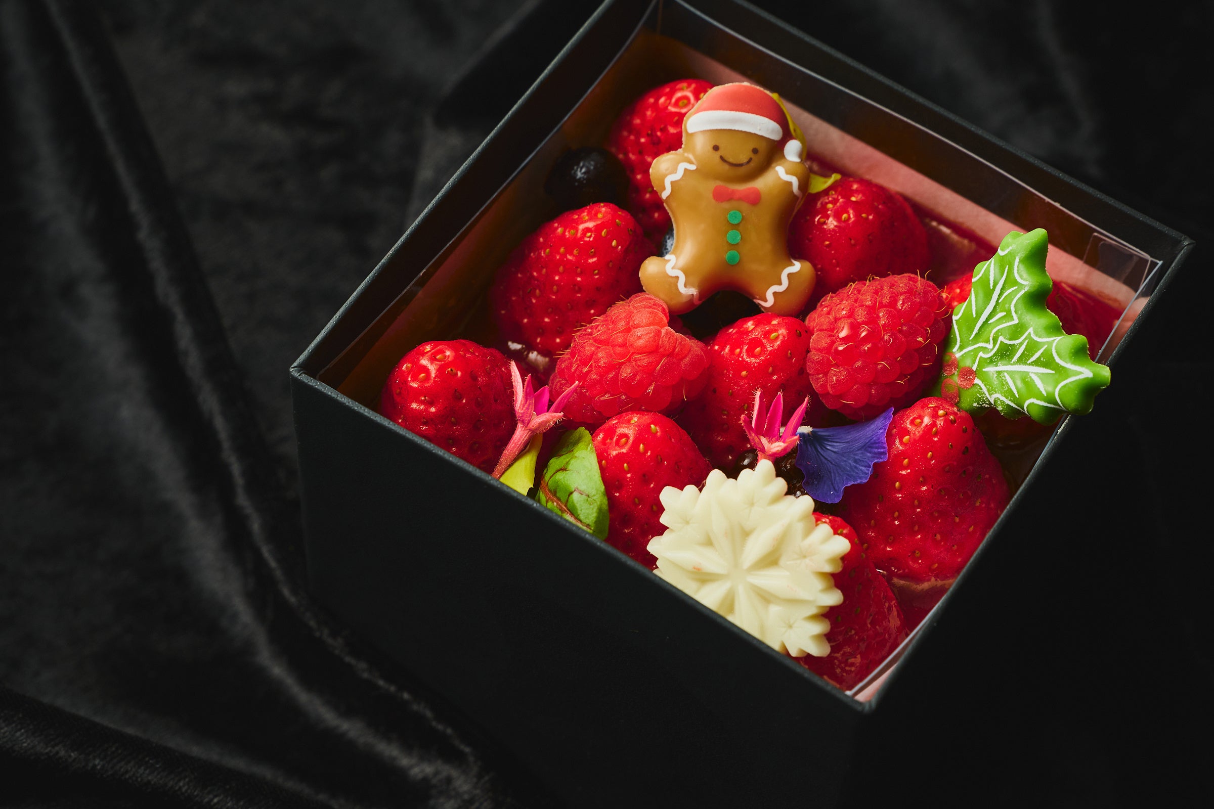 THE OSAKA STATION HOTEL, Autograph Collection開業1周年を記念して誕生した「幸せの小箱ケーキ」がクリスマススタイルで登場。黒いボックスの中に忍ばせたやさしく上質な味わいのショートケーキに、苺やラズベリー、ブルーベリーをふんだんにあしらいました。ボックスを開けた瞬間に華やかな彩りとベリーの甘やかな香りが広がります。