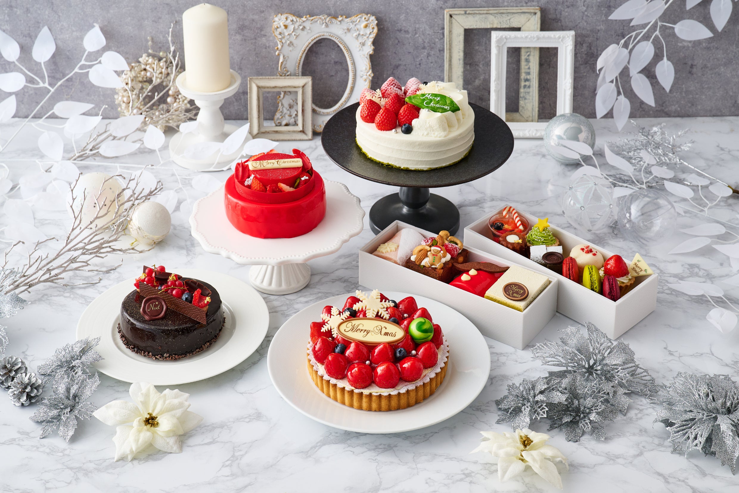 「あまおう苺のクリスマスタルト」や、様々なプチスイーツを詰め込んだ「彩箱~ノエルバージョン~」など、こだわりの詰まった全6種のケーキをご用意します。