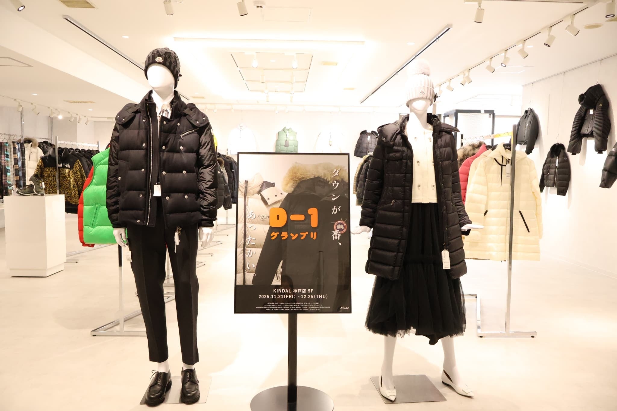 冬本番を迎えるこの季節、カインドオル神戸店では「ダウンジャケット」の魅力を最大限に引き出す期間限定イベント【D-1グランプリ】を開催いたします。