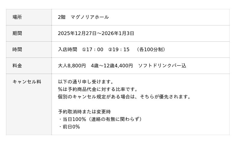 「年末年始ディナービュッフェ」フェア詳細ページへ