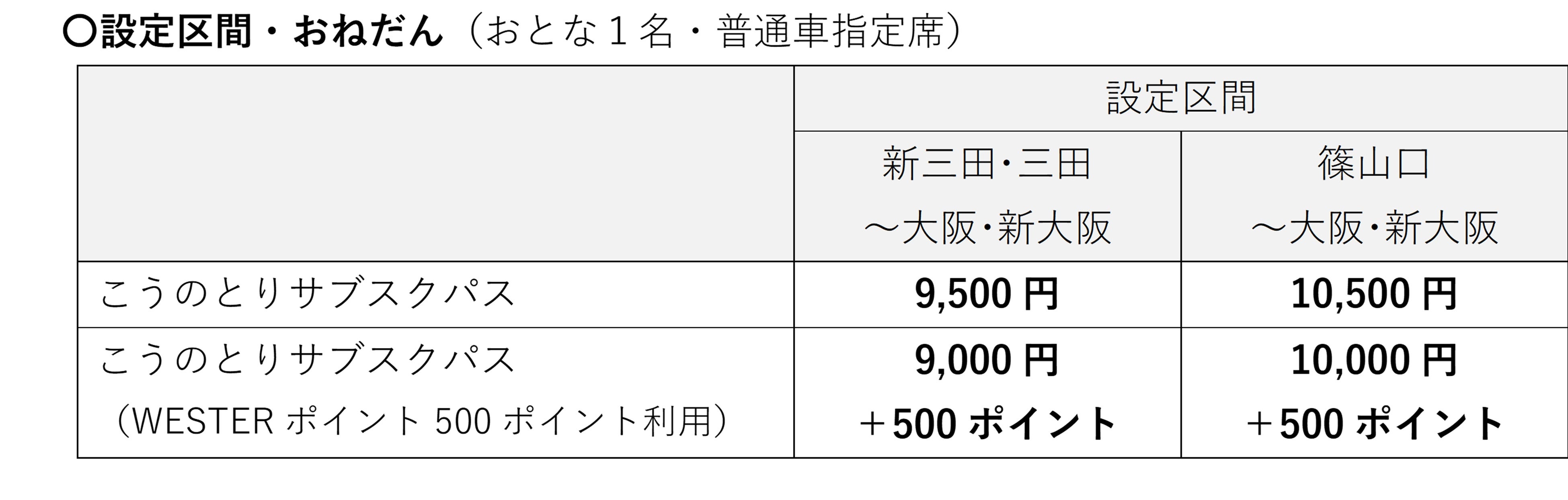・輸送障害等により予告なく「こうのとりサブスクパス」の発売を終了する場合がございます。