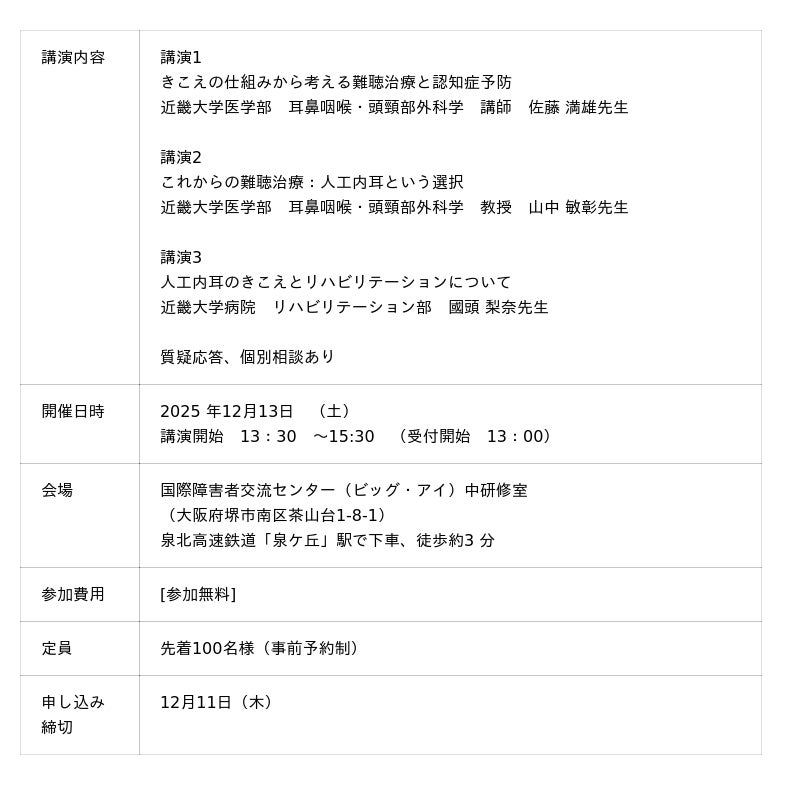 ※本セミナーは、難聴に関する理解促進を目的としており、特定の製品を宣伝したり、特定の製品に関する具体的な情報を提供したりすることを目的とするものではありません