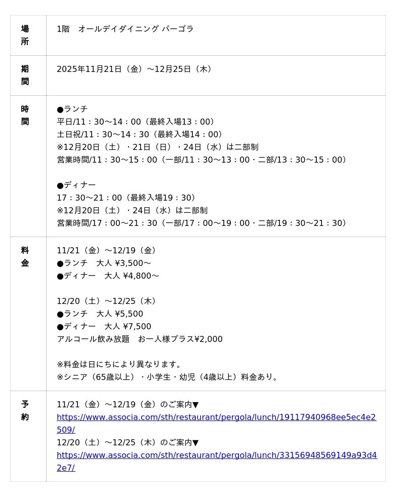 オールデイダイニング パーゴラ「クリスマスブッフェ」イメージ