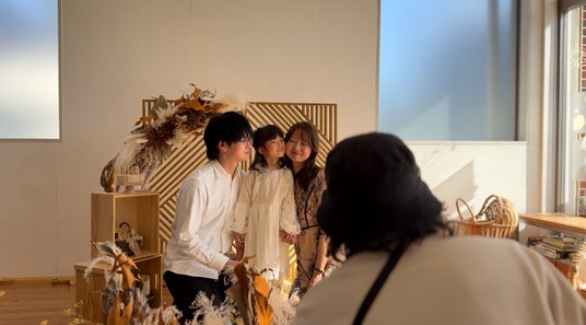 スタジオには、赤ちゃんから小学生の子どもまで幅広い家族が参加。撮影セットには暖色の光と季節のドライフラワーが飾られ、まるで映画のワンシーンのような温かい世界観が広がりました。
