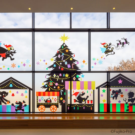 館内各所では、ドラえもんやコロ助など、キャラクターをイメージした4つのクリスマスツリーが登場しています。また、2階「みんなのひろば」の大窓には、クリスマスを楽しむFキャラクターたちのシルエットが出現し、館内のクリスマスムードを盛り上げます。