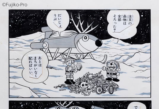 1階「展示室I」では、クリスマスにちなんだ『ドラえもん』のお話「サンタメール」を展示。