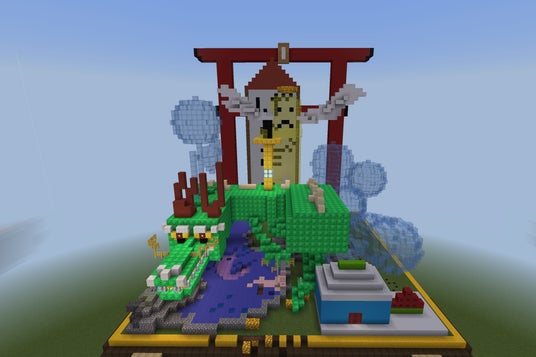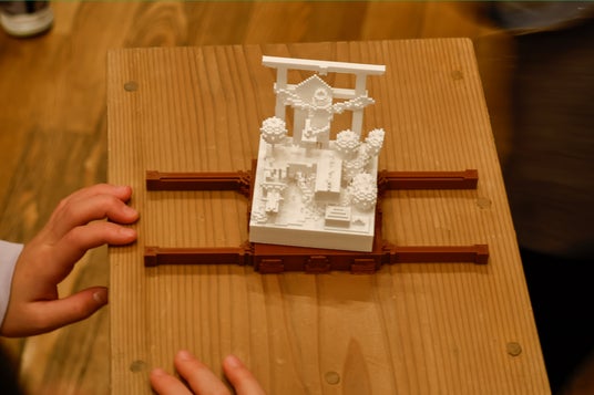 参加した子どもたちは、伝統的な御輿文化を基盤としながら、教育版マインクラフト上で独自のデザインを構築。これらのデジタルデータをもとに3Dプリンタで立体作品として出力し、展示しました。