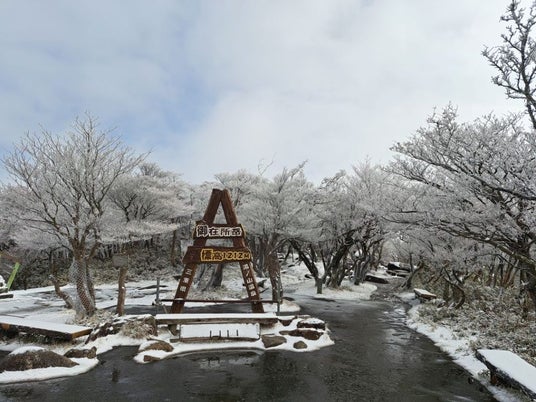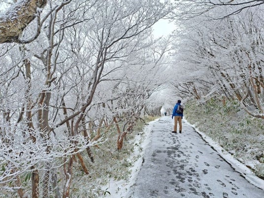 また、同日には空気中の水蒸気が樹木の枝に凍りつく「樹氷」も確認されています。