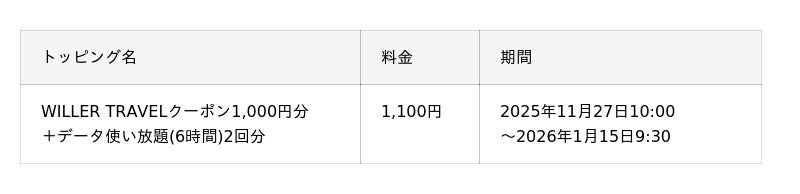※クーポンの取得・利用にはWILLER会員登録(無料)が必要です。