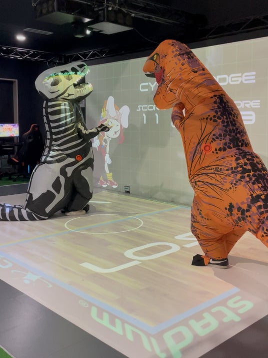 当日はレースの他にも、ティラノサウルス姿で行われる集団ラジオ体操や全員で踊るティラノサウルスダンス、玉入れの余興など、笑いの絶えないコンテンツを多数ご用意します。