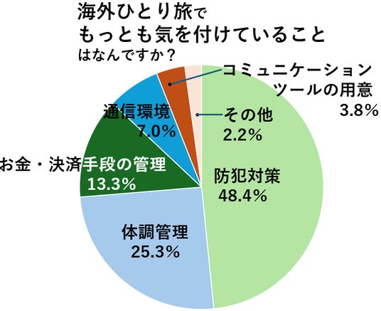 海外へのひとり旅で気を付けていることは防犯対策と答えた人が5割。