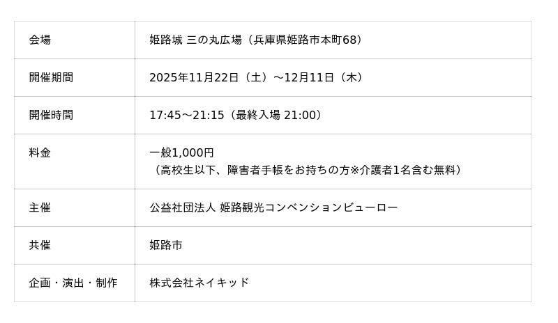 「Himeji Castle of Light『DANDELION PROJECT 姫路城×NAKED, INC.』」開催概要(抜粋)
