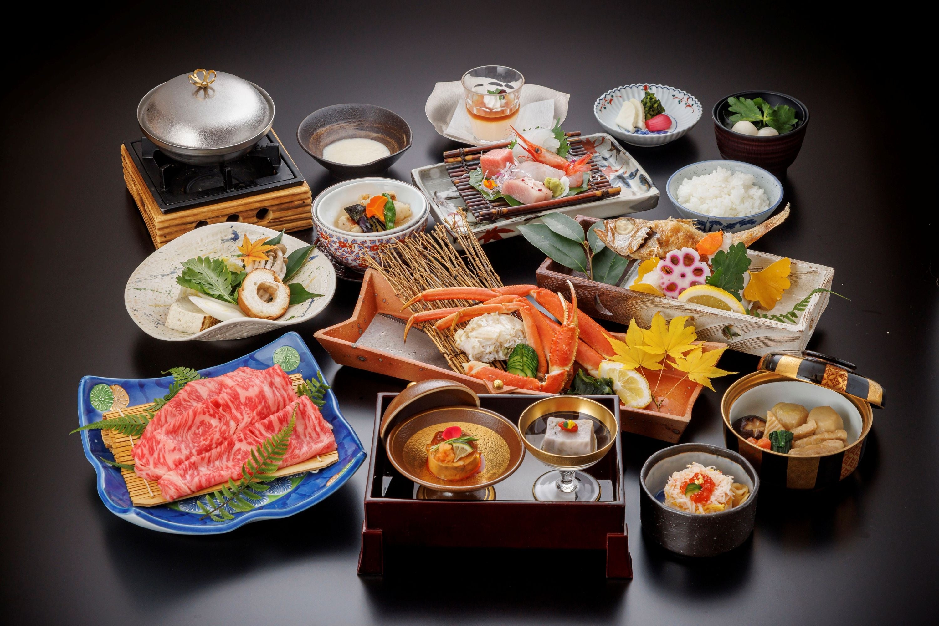 大江戸温泉物語グループで唯一の会席料理を提供する「わんわんリゾート 矢田屋松濤園」では、四季折々の海の幸・山の幸を、料理長が技術の粋をつくして腕を振るい仕立てます。会席料理は「基本会席」と「特選料理」の2種類をご用意。季節の食材と、加賀野菜などの地元食材“じわもん”を使った、繊細な会席料理をお楽しみください。