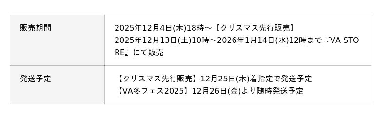 発送スケジュールや『VA STORE』メンテナンス等の詳細はVA冬フェス2025の特設サイトからご確認ください。