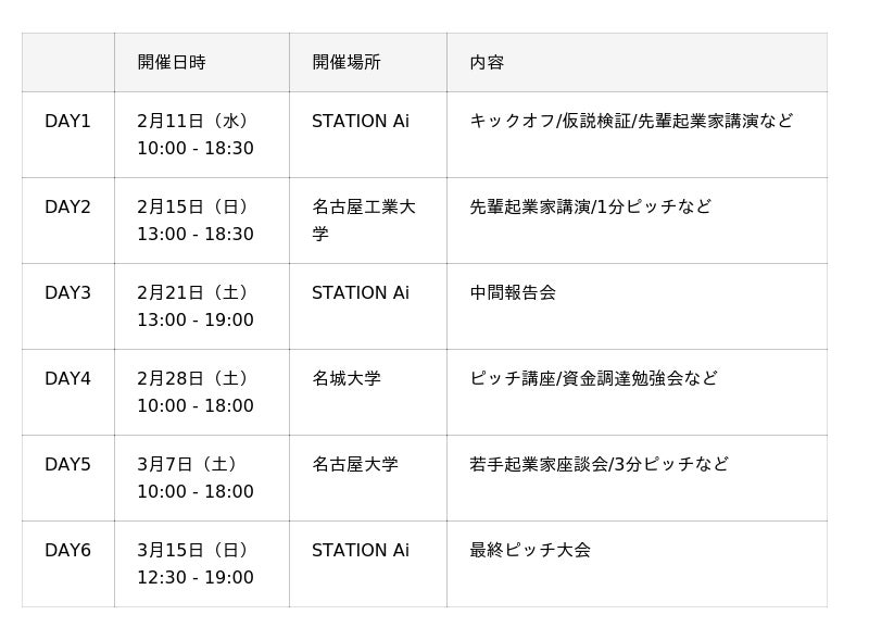 「STAPS」は、愛知県が主催となり、STATION Aiが運営する学生起業家育成プログラム「STAPS」です。1.5ヵ月間の短期集中プログラムを通して、起業を体系的に学び、実践することができます。プログラム最終日に開催されるピッチ大会において、優秀な成績を収めた学生には、褒賞としてSTATION Aiの会員権および座席利用権を付与し、継続的な支援を行います。