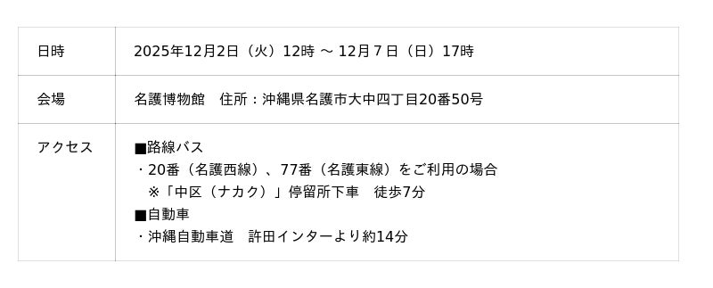 2025年12月2日(火) 12時~ <名護博物館>