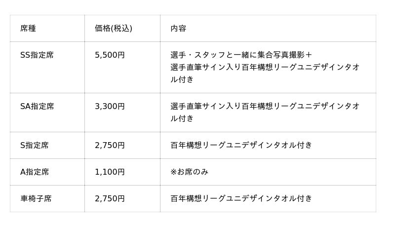 ※車椅子席1席につき、1名介添の方がご入場いただけます。介添の方にはタオルはつかないこと、ご了承お願いいたします。