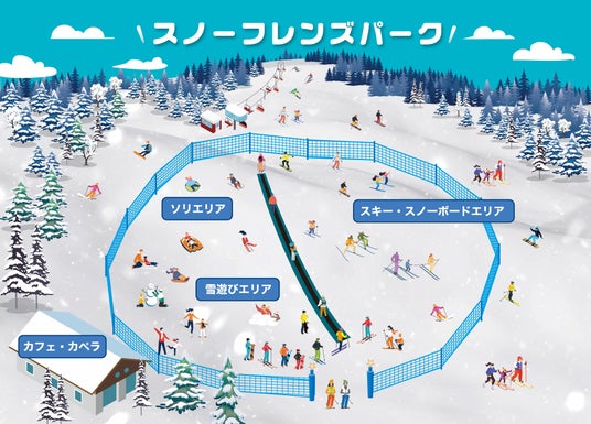 家族連れやノンスキーヤーも楽しめる多目的空間として、カフェ「カペラ」や「スノーフレンズパーク」、眺望スポットなどが新たに整備されました。