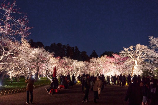 水戸の梅まつりのナイトコンテンツとして2025年から始まった、日本三名園のひとつ「偕楽園」を舞台に開催される幻想的なライトアップイベントです。広大な梅林のライトアップはもちろん、竹林での人工雲海のプロジェクションマッピングによる演出のほか、ここでしか味わえない梅を使ったグルメなどもお楽しみいただけます。昼間とは異なる偕楽園の魅力が、訪れる人々を非日常の世界へと誘います。