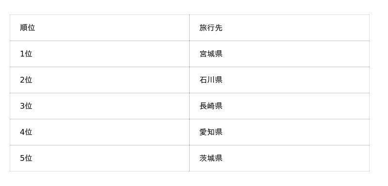 人気上昇都道府県トップ3は宮城・石川・長崎