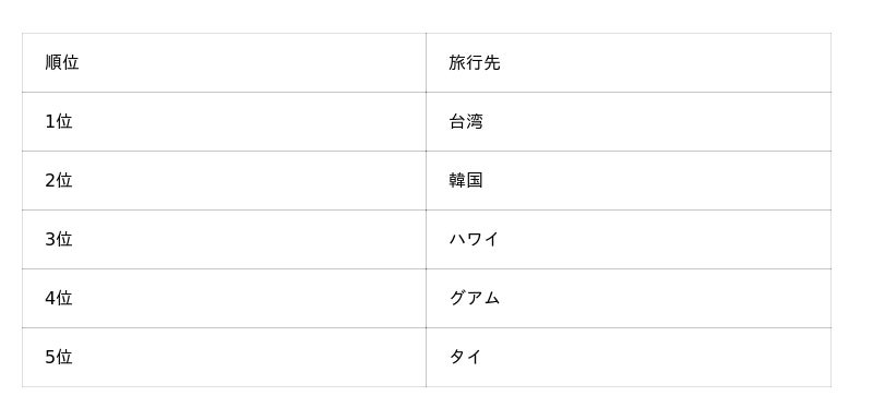 海外旅行における人気の行き先トップ3には、近場で気軽に足を運ぶことができ、旅費も比較的抑えやすい台湾、韓国と、年末年始期間も温暖な気候でリゾート気分を満喫できるハワイが例年同様にランクインしています(注6)。中でもハワイは、旅行代金に応じて「楽天ポイント」が貯まるポイントアッププランや、軽食・ドリンクを提供するラウンジが利用できるプランなど、お得さを実感できるプランが売れ筋となっています。