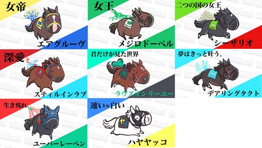 大人気のハヤヤッコグッズをはじめとして、皐月賞、ダービー、オークスなどG1で活躍した馬たちのグッズを一挙販売!(一部在庫極小アイテムもございます。品切れ時にはご了承願います。)