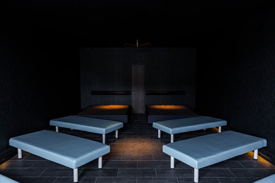 深海ルームは、深海の静けさを再現した暗がりの休憩空間。サウナ施設として日本初となるウォーターベッドを導入し、身体を水にゆだねながら海中に漂うような究極の内気浴が体感できます。