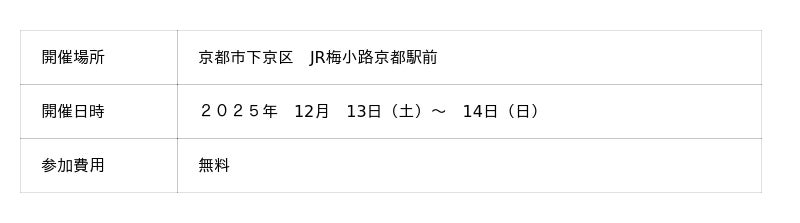 京都市下京区 JR梅小路京都西駅前 クリスマスマルシェ2025開催決定! 食と遊びと体験のワクワクが盛りだくさん!巨大クリスマスツリーも登場!