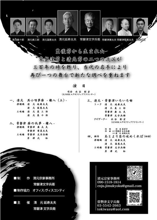 豊後節から生まれた、常磐津節と清元節の二つの流派が三百年の時を経り、