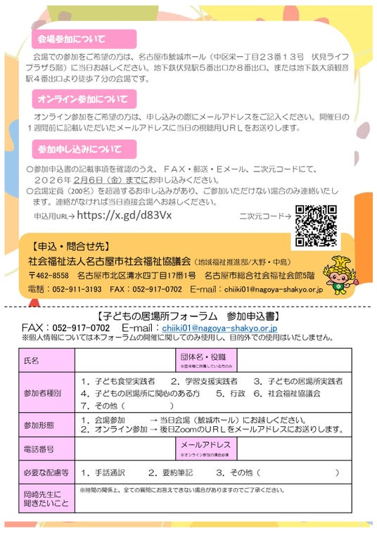 2月24日(火)「子どもの居場所フォーラム」を開催します。