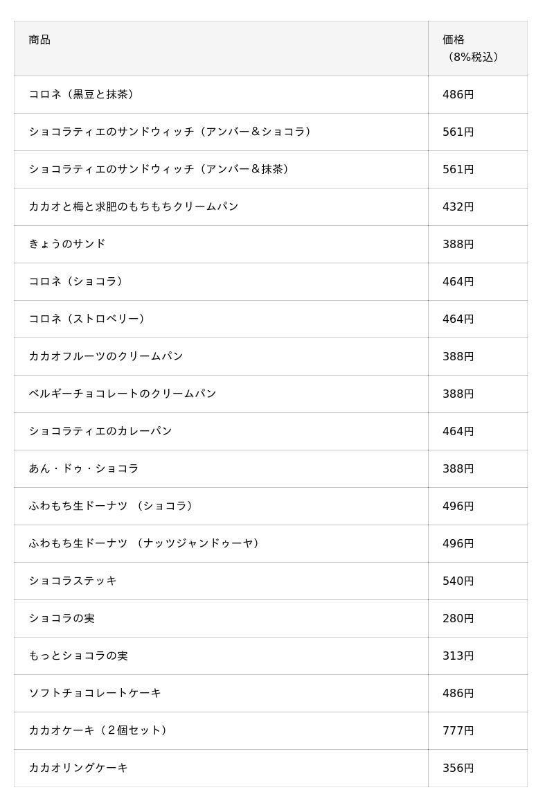 ■「GODIVA Bakery ゴディパン 京都四条店」商品一覧