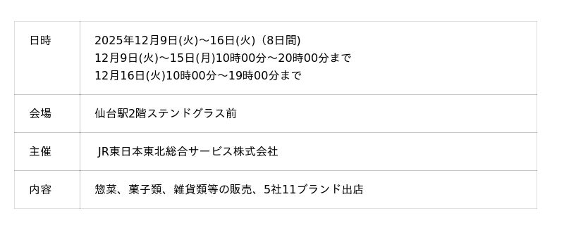 総菜、菓子類が仙台駅に大集結します。ぜひこの機会に仙台駅へお越しください。