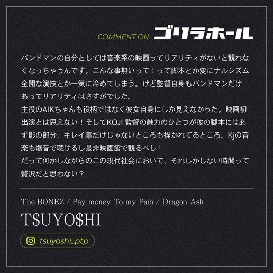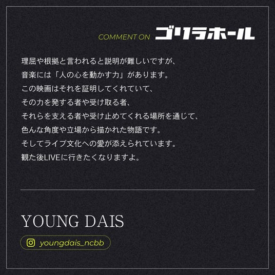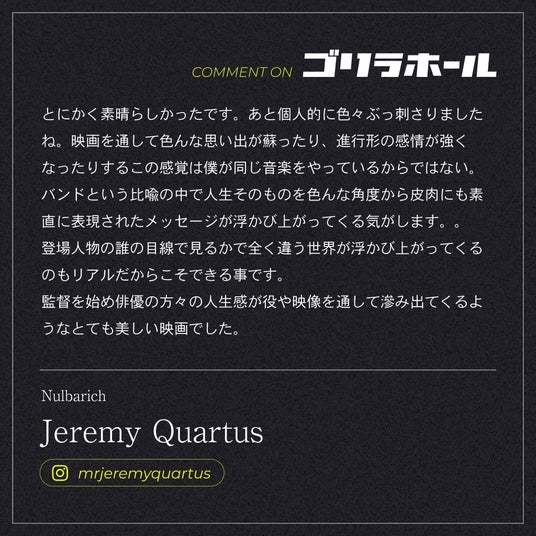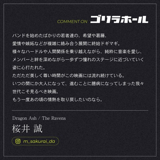 作品のリアリティやライブシーンの熱量、音楽映画としての完成度に対し、ジャンルや世代を超えた共感の声が集まっています。