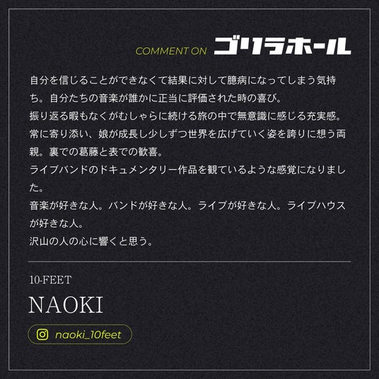 「実際にGORILLA HALL のLIVEに来たように錯覚した!」