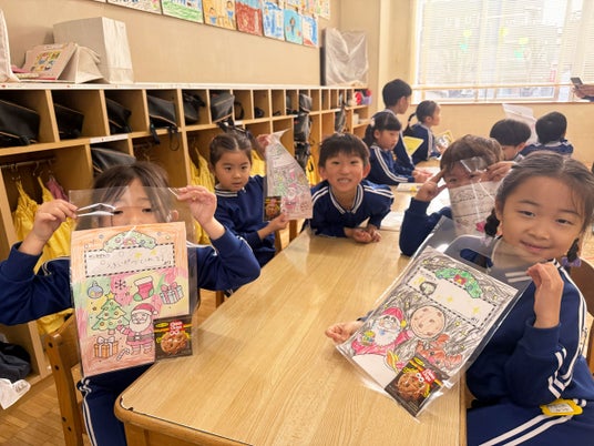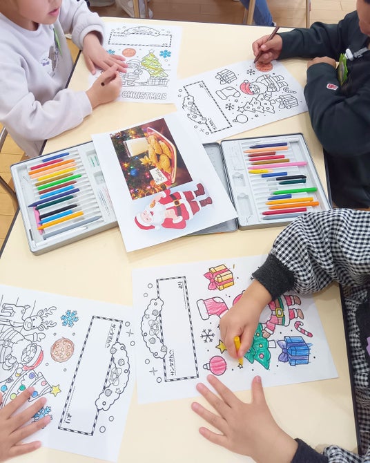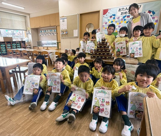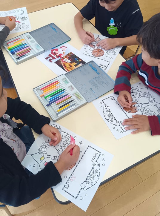 サンタさんへの感謝の気持ちを込めたメッセージカードづくりを実施。塗り絵をしながら、