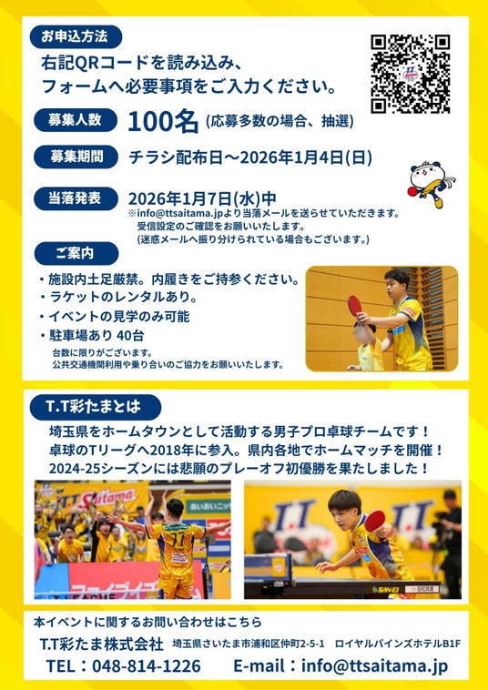 T.T彩たまからは、神 巧也選手と木造勇人選手が参加予定です!