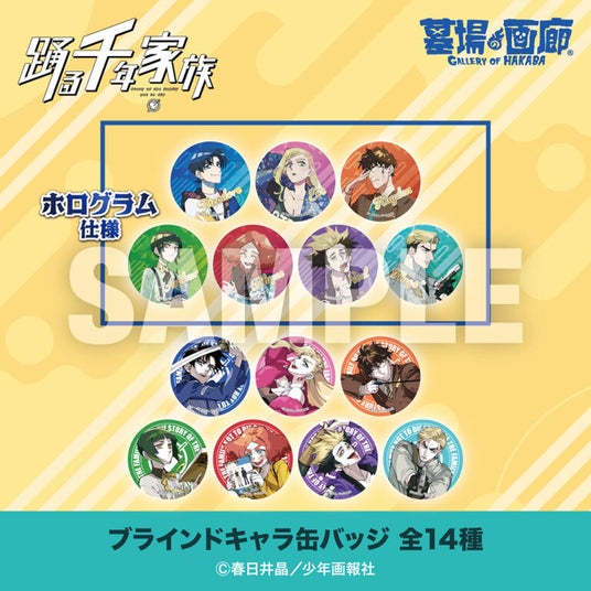 不老不死の7兄弟を描くアクションコメディ漫画『踊る千年家族』から、ベンフィールド7兄弟がそれぞれ描かれた缶バッジ全14種をリリース!ノーマルカラーの7種に加え、ホログラム仕様のスペシャルバージョン7種を加えて、ブラインド式で販売!全部集めてキミの自宅に7兄弟を同居させよう!