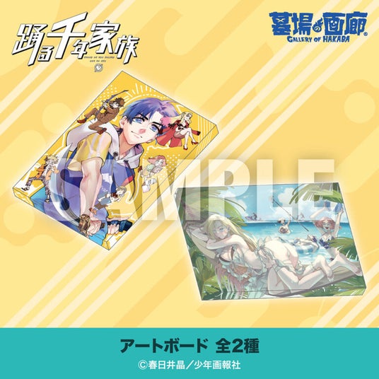 不老不死の7兄弟を描くアクションコメディ漫画『踊る千年家族』から、春日井晶の美麗イラストをプリントしたアートボードを2種リリース!ヤングキングアワーズの表紙を飾った(次男ヒューゴは登場前!)千年家族らしいイラストと、出会う男を皆狂わせる長女イヴの妖艶な姿が大々的にプリントされたアートボードは必見!
