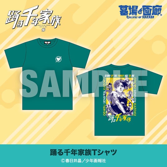 不老不死の7兄弟を描くアクションコメディ漫画『踊る千年家族』から、ハードな作風を表現したデザインのTシャツが登場!死んでも死にきれない主人公の四男テオの頭が撃ち抜かれる衝撃のイラストを中心に、個性豊かな兄弟たちが描かれた作品のインパクトをそのままプリントした1枚!
