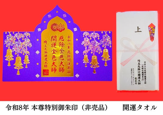 初詣大祈願祭では、「日本三大厄除け開運大師」の1つ指定されている「厄除け金色大師様」と日本三大開運大師の1つに指定されている「開運金色大師様」の二体の秘仏本尊の特別開帳を行います。