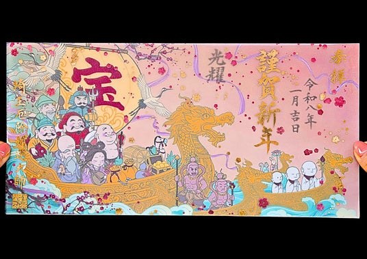 初詣限定切り絵御朱印「大開運の招き猫と黄金の扇子」