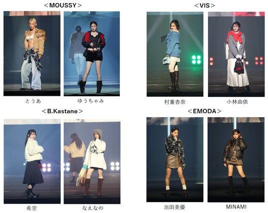 そして、“cheer up LADY ”をコンセプトに掲げ、"高感度"なアイテムで作る"好感度"なスタイリングを提案するブランドVIS(ヴィス)は、甘すぎない"モダンフェミニン"に上品さをプラスしたスタイリングを披露!国民的タレントの村重杏奈、2024年2月に櫻坂46を卒業後、2025年5月にはソロプロジェクト「yousti(ユースティー)」の始動を発表し、同年8月27日(水)に1st mini Album『yousti』をリリースしてソロデビューを果たした小林由依らが登場し、12月ならではのクリスマスムードが漂う演出にも注目が集まりました。