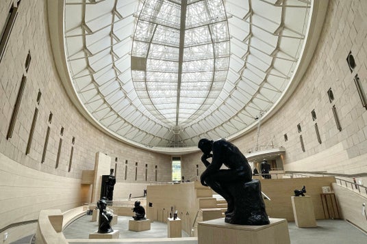 ラグビーボール状のガラス天井が印象的な巨大なロダン館は、別館として1994年にオープン。《地獄の門》をはじめとする32体のオーギュスト・ロダンの彫刻を、天候に左右されずゆったりとした空間で楽しめます。
