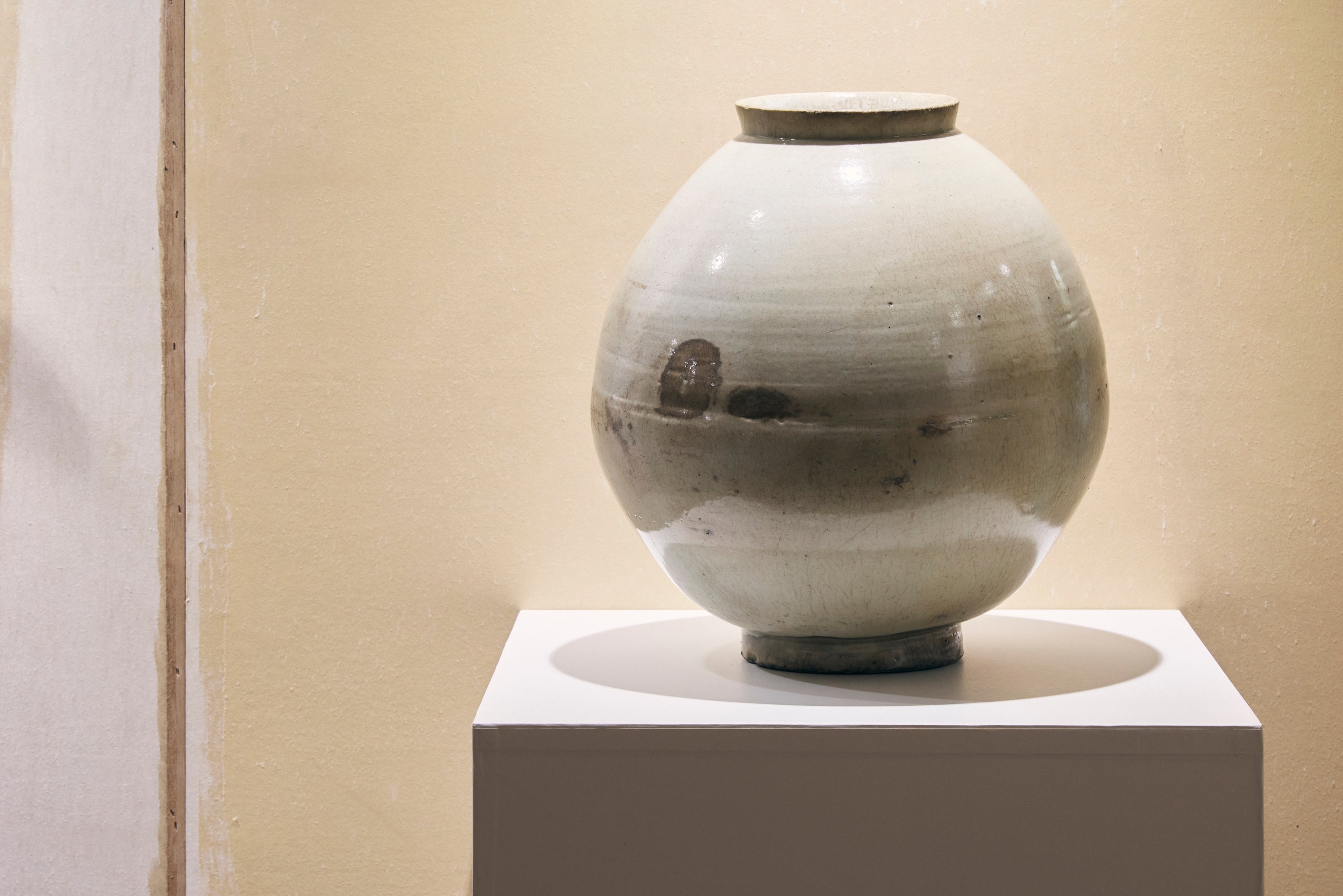 1927年竣工のスパニッシュ様式の洋館に、数百年前に朝鮮半島で焼かれたたくさんの「李朝白磁」が静かに置かれます。柳宗悦らが「悲哀の美」や「無作為の美」を見出した無数の白磁は、精神性の結晶として、無名の工人たちの記録として、あるいは日本の植民地主義の帰結としても存在しています。その不完全で揺らぎのある佇まいは、本展のタイトルにある「あいまいさ」を象徴する存在です。