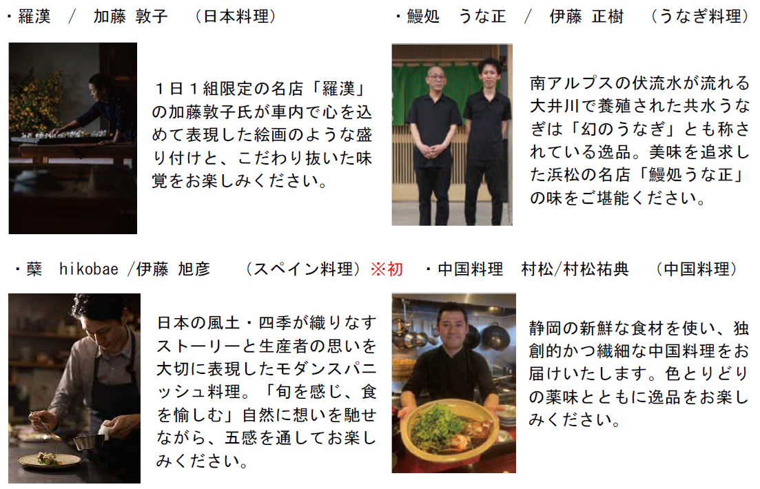 2025年秋に実施し、多くのお客さまからご好評いただいたコースを2026年春でも実施。日本の名峰「富士山」の景観や宿場町の街並み、地域の食材を用いた本列車でしか味わえないお料理など、江戸時代からの大動脈東海道を体感いただけるオンリーワンの旅をご用意します。